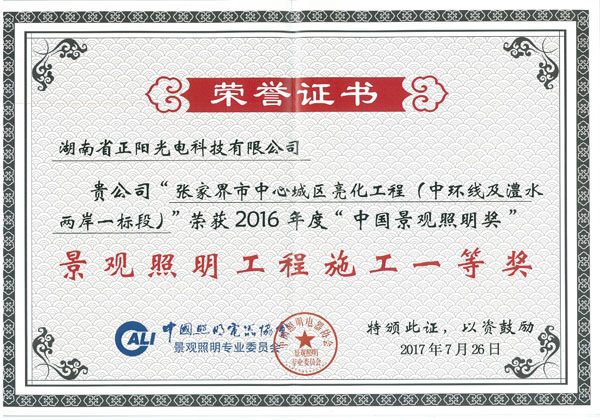 湖南省正陽光電科技有限公司是一家從事亮化工程及大型燈光藝術(shù)的設(shè)計、制作、安裝和維護于一體的專業(yè)化公司。公司資質(zhì)齊全、管理嚴謹、技術(shù)先進、實力雄厚,取得了城市及道路照明工程專業(yè)承包壹級資質(zhì)、照明工程設(shè)計專項甲級資質(zhì)、機電工程施工總承包貳級資質(zhì)、施工勞務(wù)等資質(zhì)、國家高新技術(shù)企業(yè)、國家“重質(zhì)量·守誠信”示范企業(yè)。
